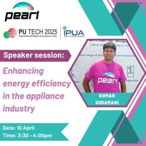 Then, at 3:30pm, Kumar Sudamani, Head of Product Development and Technical Centre, will present on ‘Enhancing Energy Efficiency in the Appliance Industry.’ Kumar will discuss how polyurethane innovation is contributing to smarter, more energy-efficient appliances in today’s evolving landscape.